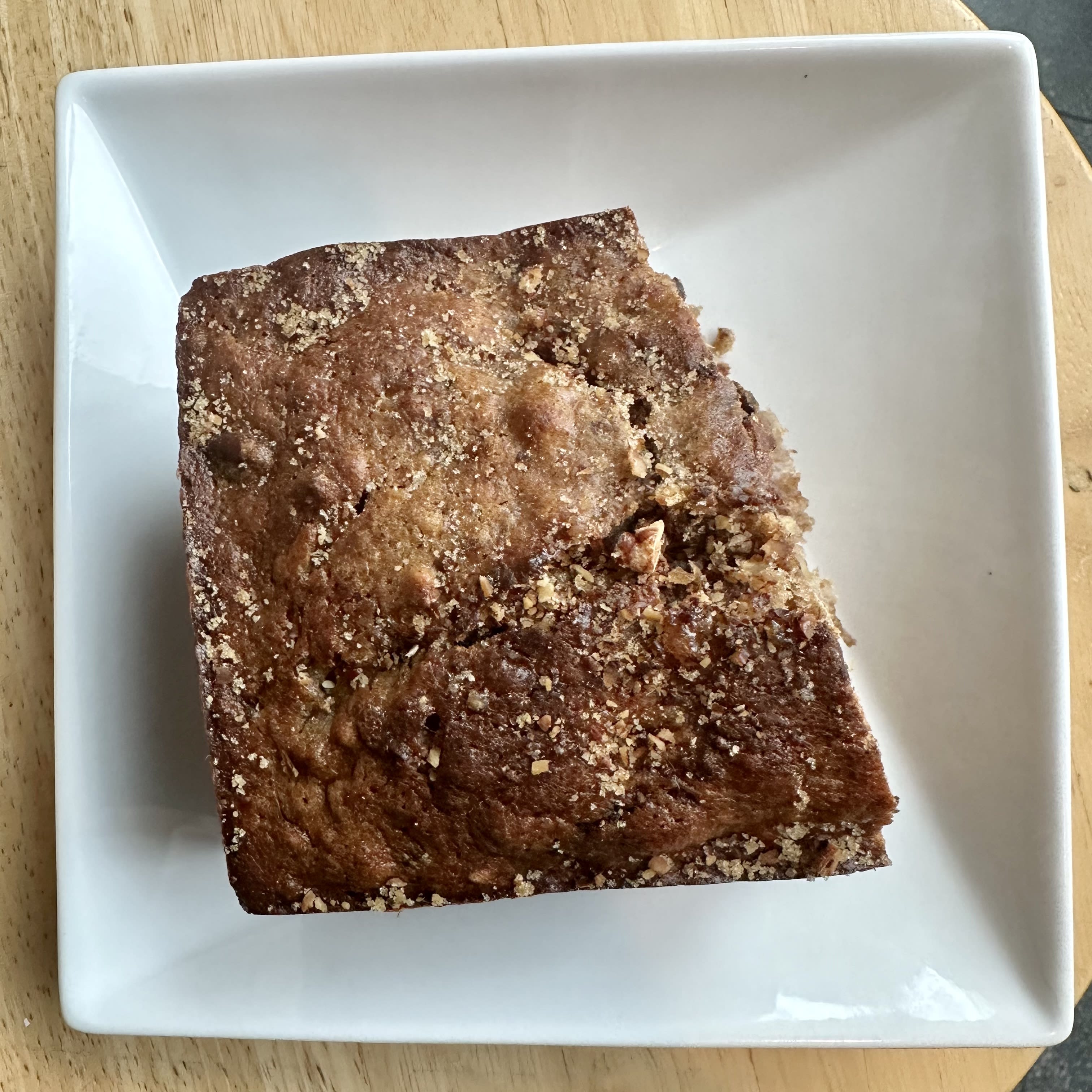 Modifications Intentional: I always chop up a few bananas separate from the requisite mashed portion that’s mixed into the oil and sugar. I like the feeling of banana chunks intermingled with the bread crumb. Subbed toasted pecans for walnuts, which we were out of, and used browned butter + the last bit of yogurt to add lost moisture for olive oil, which we were running low on. Plus, the nutty flavor is nice.