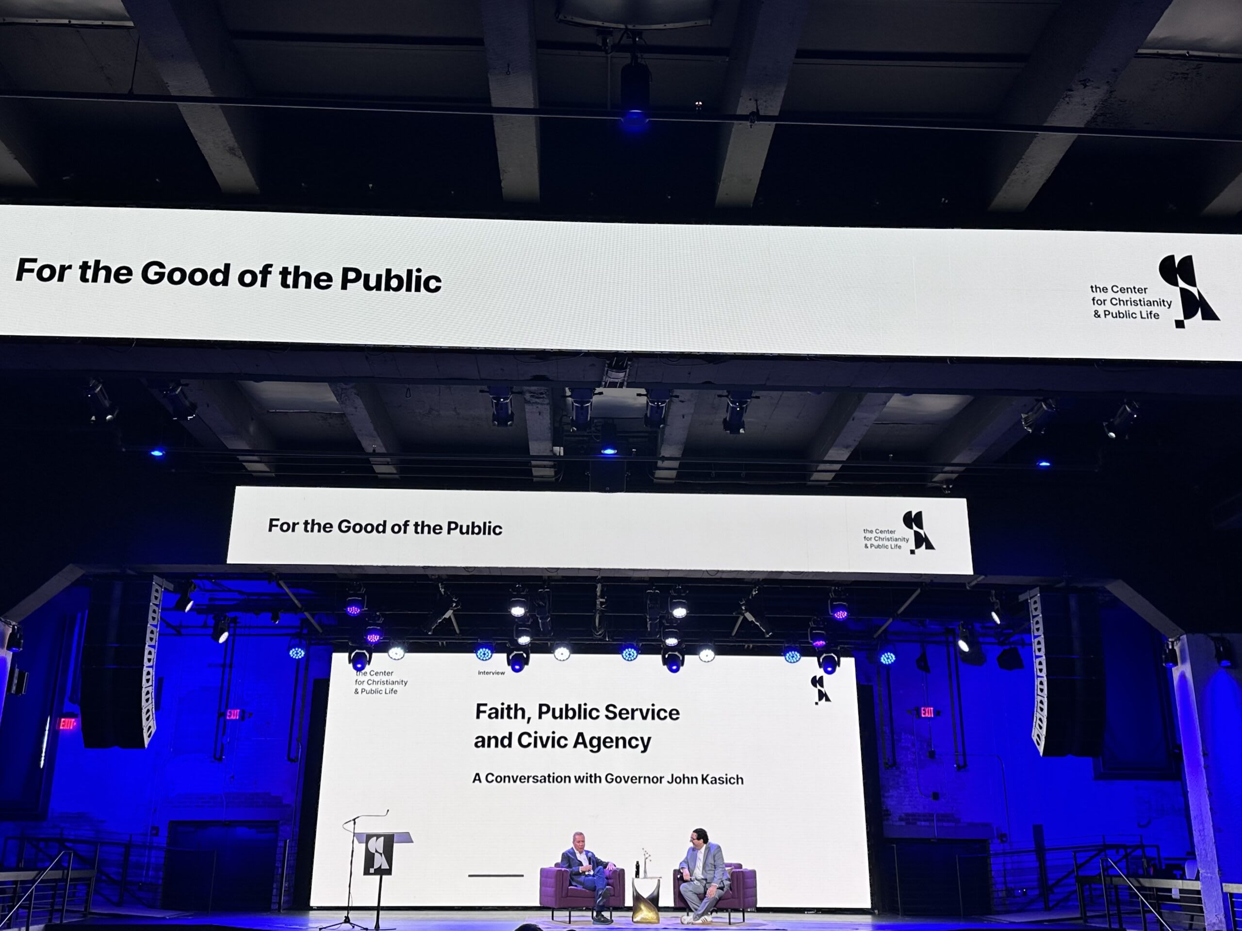 John Kasich, Ohio governor and former presidential candidate, discussing faith and public service with CCPL founder Michael Wear.