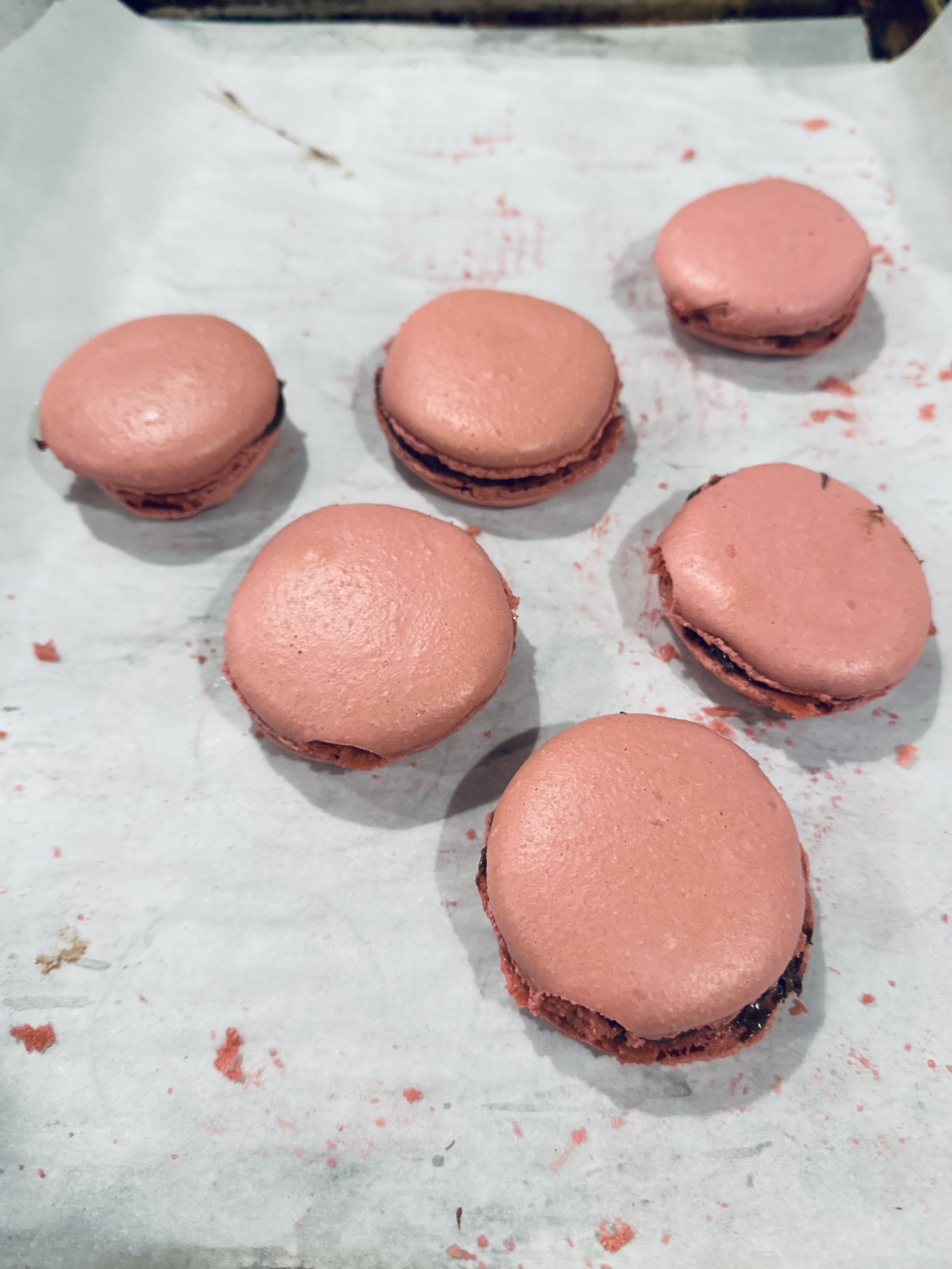 And to be fair, it’s not only easier to fill 12 macarons than 30, but extra large macaron are really just an excuse to eat…more macarons. Well deserved rewards for my kitchen helpers.