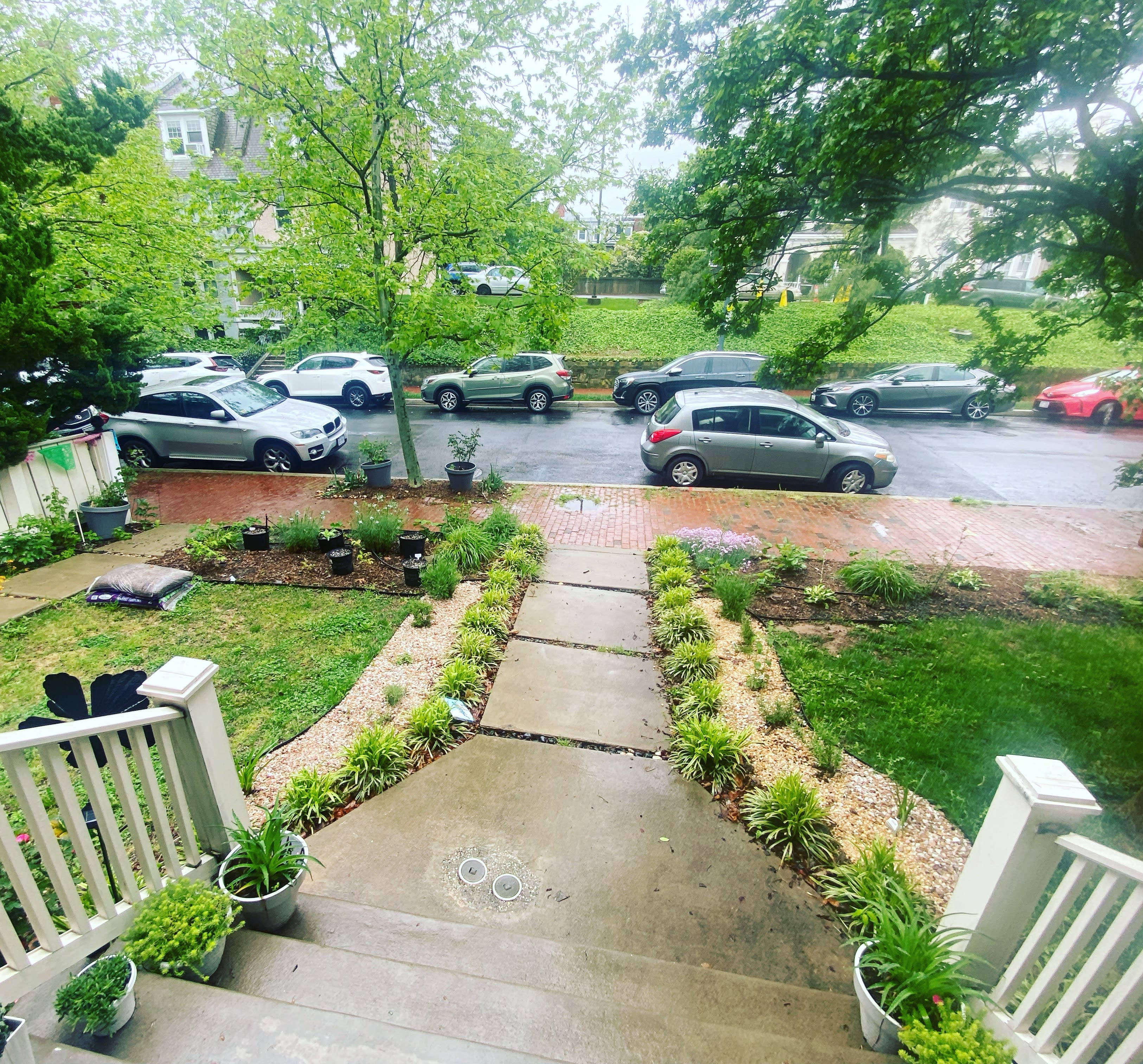 The neighbor’s yard I’ve landscaped and tended to for the past three years.