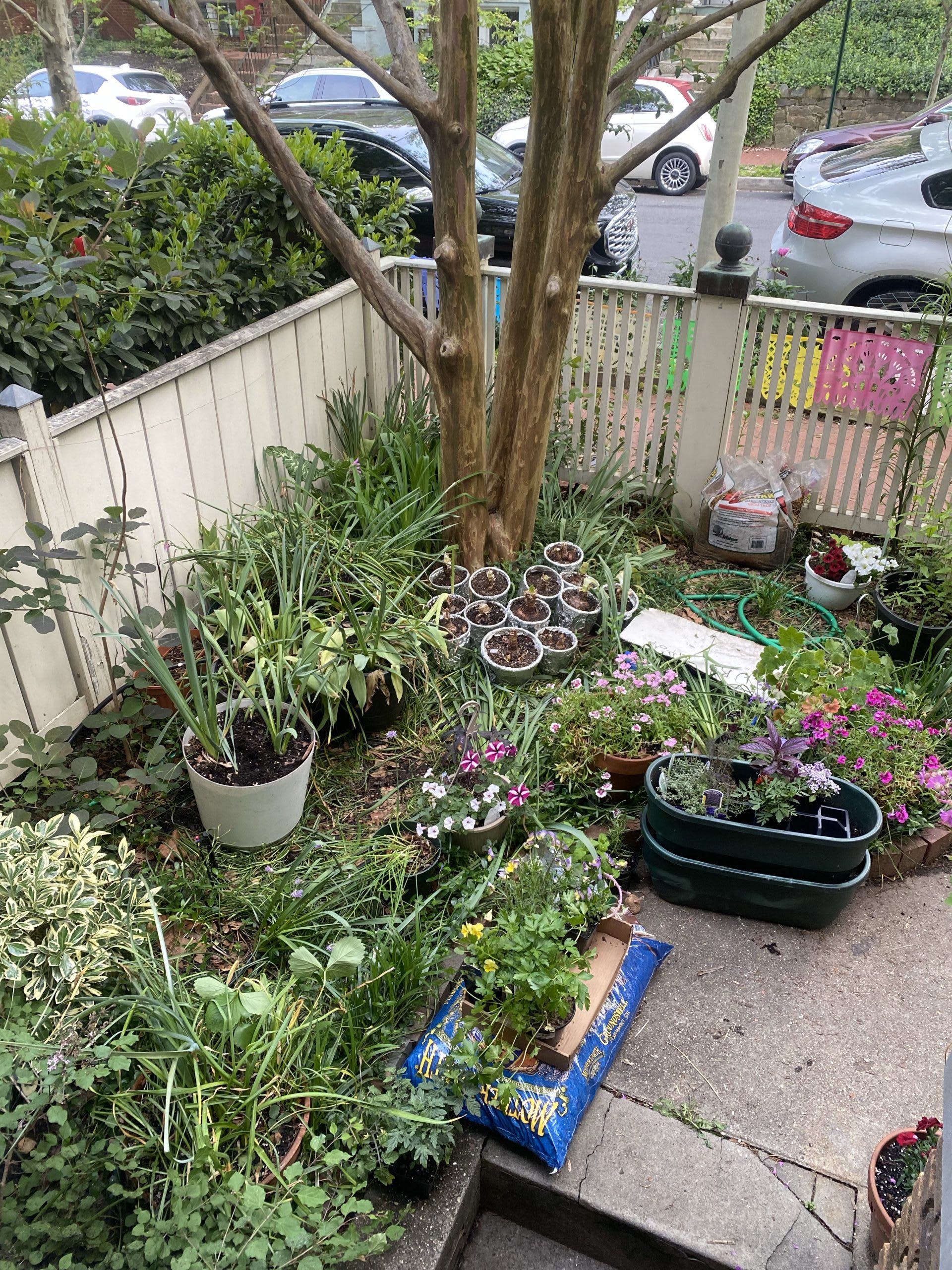 This weekend was also Mothers’ Day, time for my traditional gift of free time for the garden based manual labor of my choice, as well as a selective looking the other way when I overdo it on plant purchases. I can track the development of portions of my garden to Mothers’ Days of years past. There was the year I spent hundreds of dollars at the wonderland that was Behnke’s (RIP), my first foray into setting up a garden in our then-new house. The year my own mother helped me plant my first over-the-rail planters for our front porch, filled with stunningly color coordinated herbs and perennials. The first year of Covid, when a bunch of plants from an online plant sale were delivered to my front porch just in time, and spent the day shoveling compost into terrible soil in a part of our neighbors’ yard and populating it with colorful annuals. The next year I extended my efforts to the far side of their yard, marveling at how much nicer the soil had already become on the side I’d worked the year before. And every year I swoon over some neighbors’ gorgeous peonies, which tend to open up at just this time of year, like God intended them as a Mothers’ Day gift. And for the past few years my husband has not only tolerated, but downright encouraged me to expand our own growing peony garden, even digging the holes.
