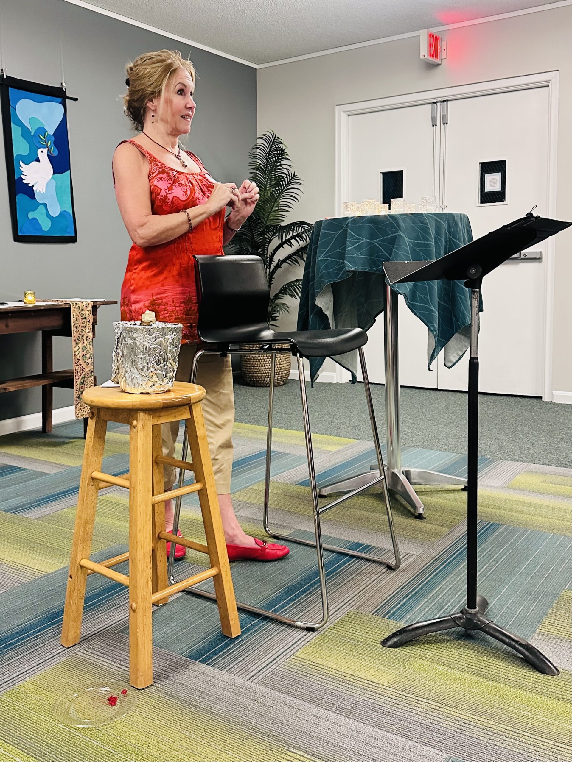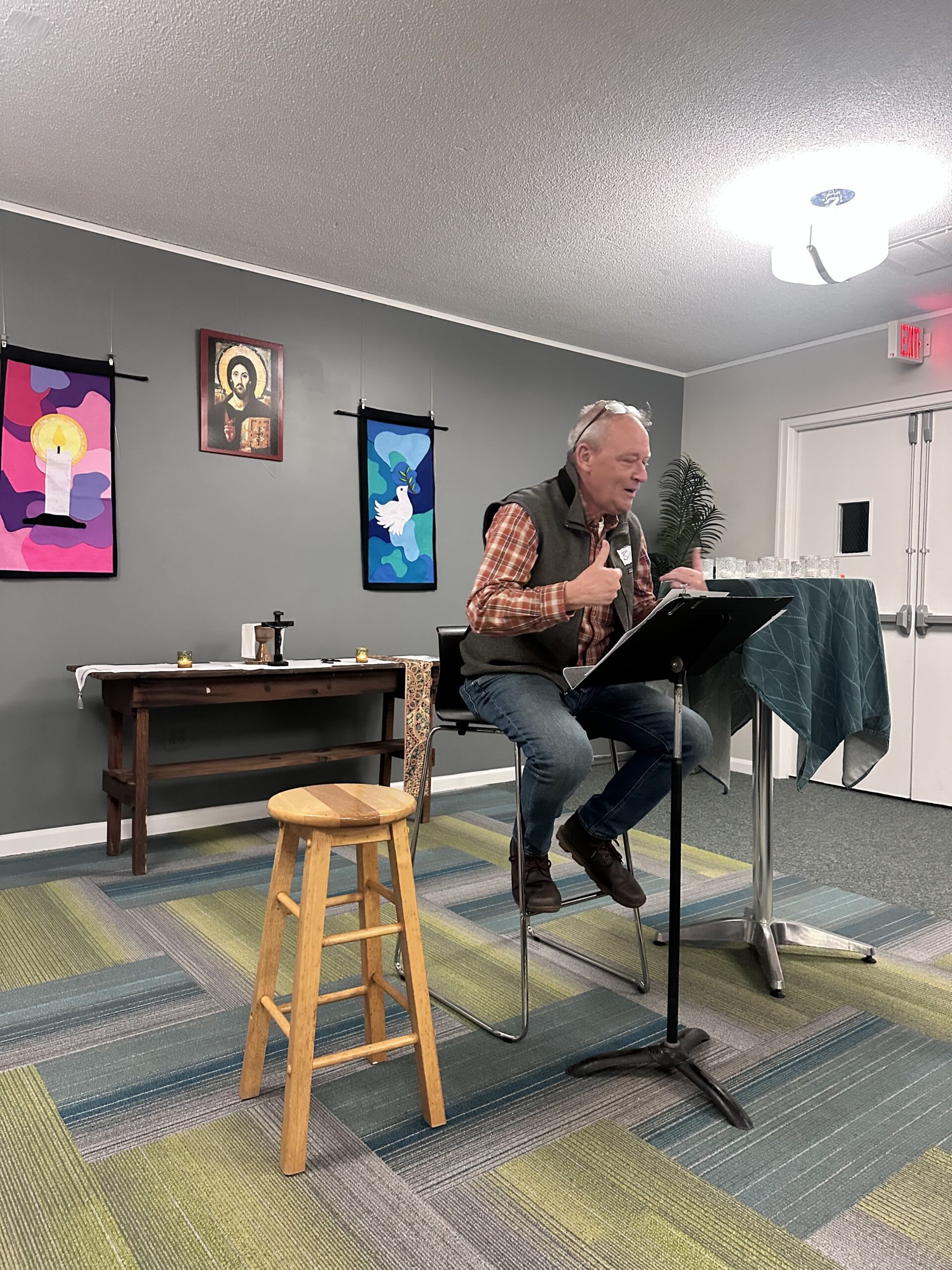 Not only hearing tales from seven other storytellers, with their moments of gravity and grace. (Moments I am still pondering: sitting, in distress, back to back with a friend who becomes the presence of Jesus. Giving out of poverty. Offering small seeds, breakfast, a place to sleep, which grew into expansive goodness.)